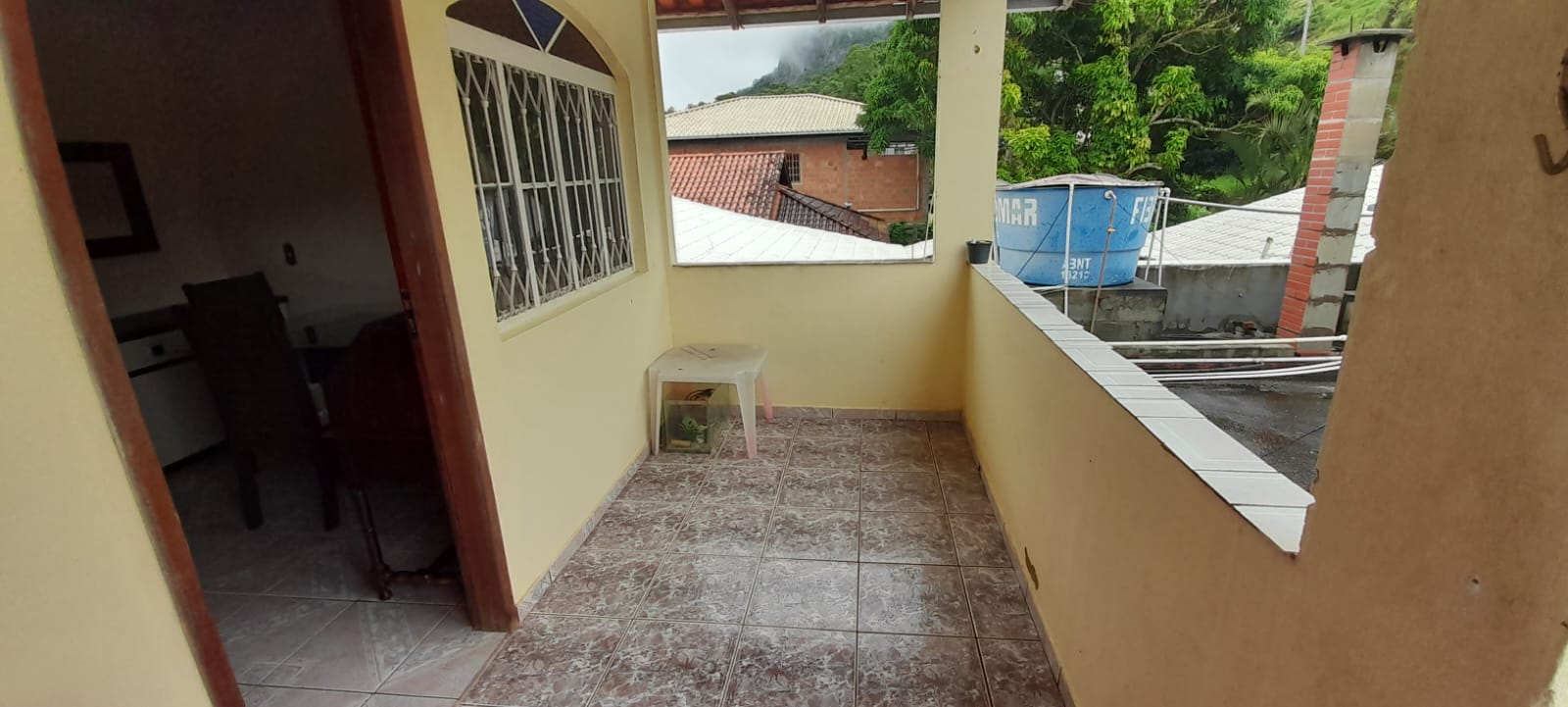 A casa de cima tem dois quartos, sala, copa cozinha, uma área de ampla e varanda.